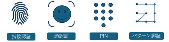 パスワードの代わりに利用でき、お客さまが設定している端末のロック解除方法で認証されるため、今までのログイン方法よりセキュリティが高くなります。